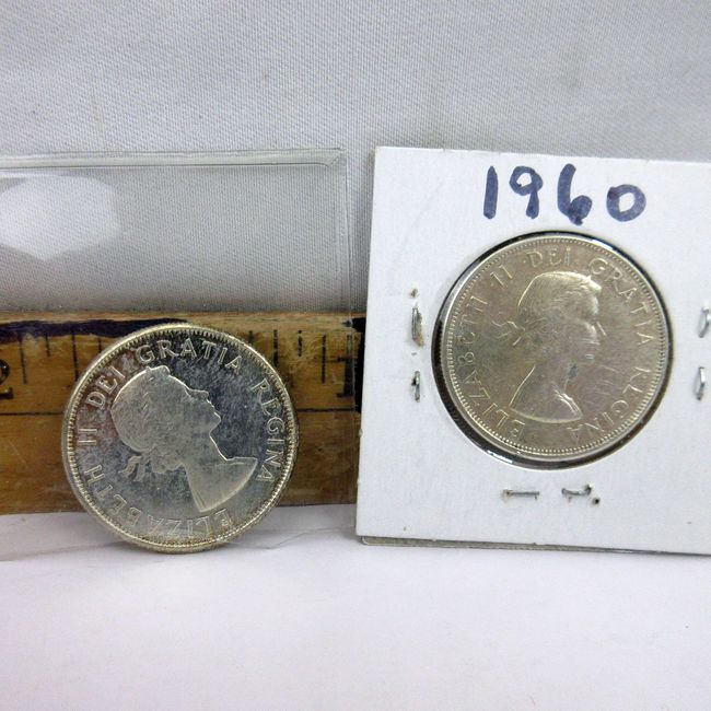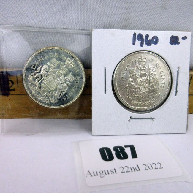 Current Bid: $19.50 [Refresh Price]YOU WILL NEED TO REFRESH THIS PAGE TO SEE UPDATED BID (Log in and this will update automatically) You must LOG IN or REGISTER to see this full page auction listing and bid. Auction is Over Winning Bid Amount: $19.50 **Lot Details: (87t) - 2 Canadian Silver Halves dated 1960 and 1961 Log in to add this lot to your watch list or place a bid |