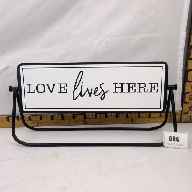 Current Bid: $9.01 [Refresh Price]YOU WILL NEED TO REFRESH THIS PAGE TO SEE UPDATED BID (Log in and this will update automatically) You must LOG IN or REGISTER to see this full page auction listing and bid. Auction is Over Winning Bid Amount: $9.01 **Lot Details: (96t) - Metal revolving double sided sign, Love Lives Here, My Happy Place. 13"L x 6"H Log in to add this lot to your watch list or place a bid |