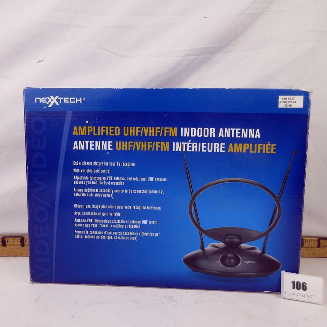 Current Bid: $5.00 [Refresh Price]YOU WILL NEED TO REFRESH THIS PAGE TO SEE UPDATED BID (Log in and this will update automatically) You must LOG IN or REGISTER to see this full page auction listing and bid. Auction is Over Winning Bid Amount: $5.00 **Lot Details: (106t) - Amplified indoor antenna UHF/VHF, FM Log in to add this lot to your watch list or place a bid |