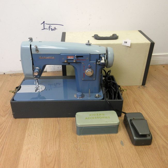 Current Bid: $22.00 [Refresh Price]YOU WILL NEED TO REFRESH THIS PAGE TO SEE UPDATED BID (Log in and this will update automatically) You must LOG IN or REGISTER to see this full page auction listing and bid. Auction is Over Winning Bid Amount: $22.00 **Lot Details: (114t) - Vintage blue domestic portable sewing machine with accessories. Works Log in to add this lot to your watch list or place a bid |