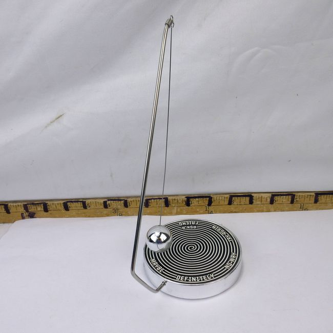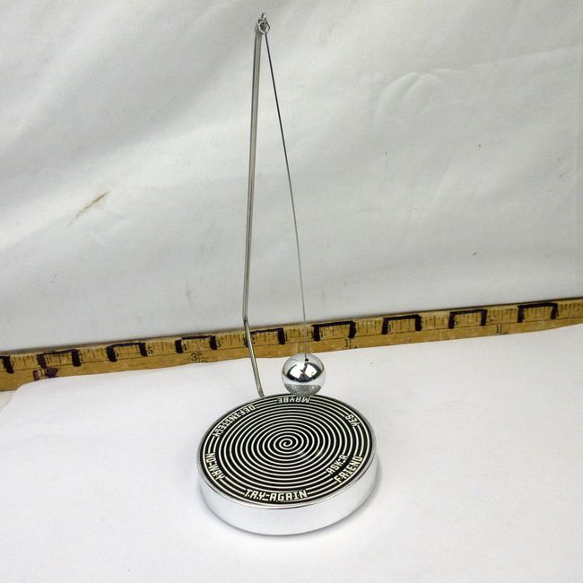 Current Bid: $9.97 [Refresh Price]YOU WILL NEED TO REFRESH THIS PAGE TO SEE UPDATED BID (Log in and this will update automatically) You must LOG IN or REGISTER to see this full page auction listing and bid. Auction is Over Winning Bid Amount: $9.97 **Lot Details: (154t) - Magnetic swinging pendulum for decision making Log in to add this lot to your watch list or place a bid |