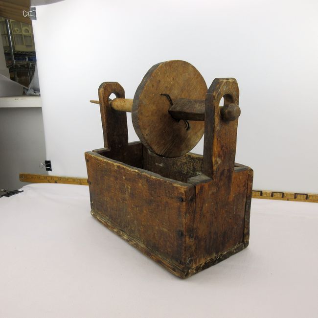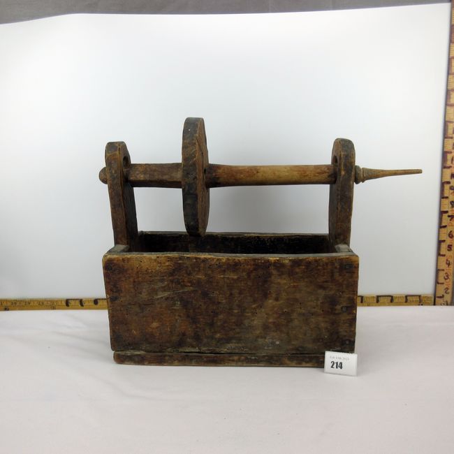 Current Bid: $35.00 [Refresh Price]YOU WILL NEED TO REFRESH THIS PAGE TO SEE UPDATED BID (Log in and this will update automatically) You must LOG IN or REGISTER to see this full page auction listing and bid. Auction is Over Winning Bid Amount: $35.00 **Lot Details: (214q) - Antique wood wool winder tote, well made and preserved with original patina. 13" x 6"W x 12"H, spool is 17"L Log in to add this lot to your watch list or place a bid |
