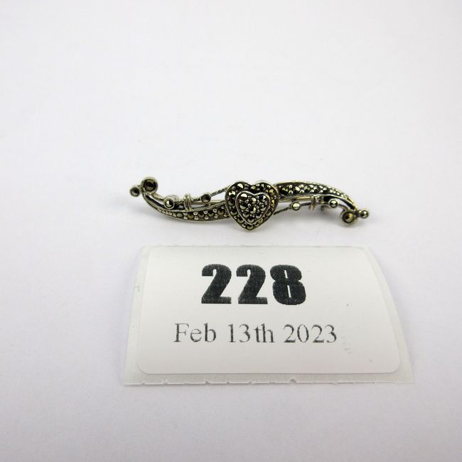 Current Bid: $7.00 [Refresh Price]YOU WILL NEED TO REFRESH THIS PAGE TO SEE UPDATED BID (Log in and this will update automatically) You must LOG IN or REGISTER to see this full page auction listing and bid. Auction is Over Winning Bid Amount: $7.00 **Lot Details: (228q) - Twin Heart Marcasite Sterling Silver Brooch 1 3/4" Log in to add this lot to your watch list or place a bid |