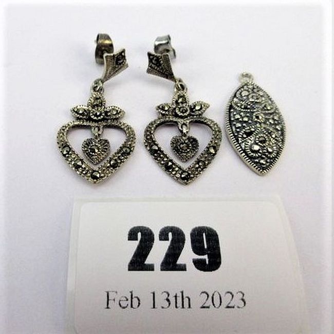 Current Bid: $7.00 [Refresh Price]YOU WILL NEED TO REFRESH THIS PAGE TO SEE UPDATED BID (Log in and this will update automatically) You must LOG IN or REGISTER to see this full page auction listing and bid. Auction is Over Winning Bid Amount: $7.00 **Lot Details: (229q) - Lot of 2 Sterling Silver Marcasites, Twin Heart Dangling Earrings And Oval Sterling Silver Pendant Log in to add this lot to your watch list or place a bid |