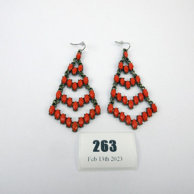 Current Bid: $5.00 [Refresh Price]YOU WILL NEED TO REFRESH THIS PAGE TO SEE UPDATED BID (Log in and this will update automatically) You must LOG IN or REGISTER to see this full page auction listing and bid. Auction is Over Winning Bid Amount: $5.00 **Lot Details: (263q) - Never worn, 5 Tier coral colour Chandelier Drop Earrings 3 1/2" Log in to add this lot to your watch list or place a bid |