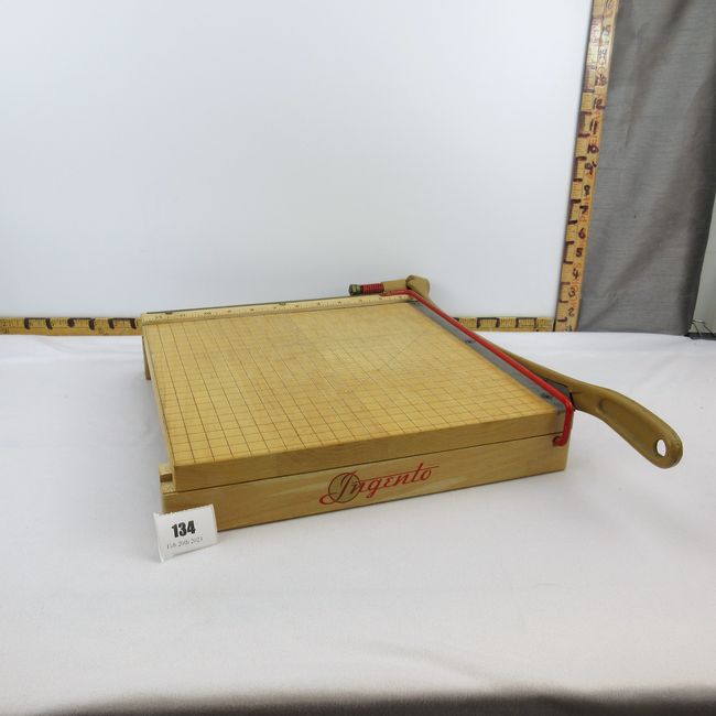 Current Bid: $15.00 [Refresh Price]YOU WILL NEED TO REFRESH THIS PAGE TO SEE UPDATED BID (Log in and this will update automatically) You must LOG IN or REGISTER to see this full page auction listing and bid. Auction is Over Winning Bid Amount: $15.00 **Lot Details: (134r) - A vintage Ingento paper cutter with cast iron handle. This piece is straight out of a local school. Very well built, still has years of life left! Log in to add this lot to your watch list or place a bid |