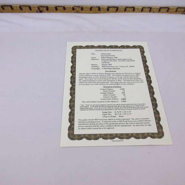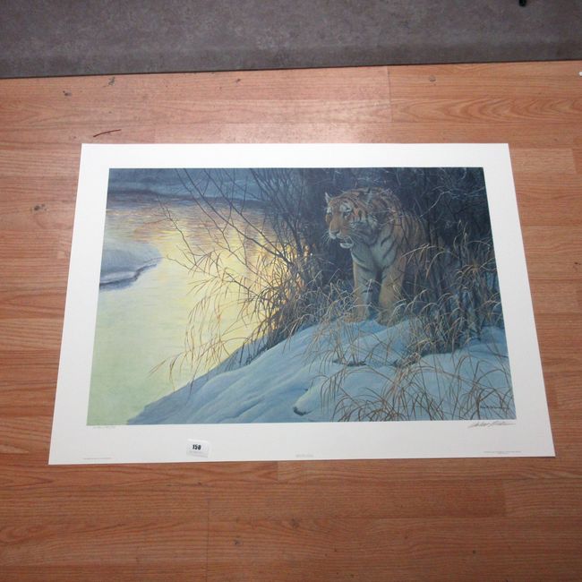 Current Bid: $82.01 [Refresh Price]YOU WILL NEED TO REFRESH THIS PAGE TO SEE UPDATED BID (Log in and this will update automatically) You must LOG IN or REGISTER to see this full page auction listing and bid. Auction is Over Winning Bid Amount: $82.01 **Lot Details: (150r) - Robert Bateman Siberian Tiger limited edition print bought from the Millpond Press Inc. This is a full sized, high quality print that was bought in the early 1990’s as an investment but was never framed. Originally purchased for $200 in 1991. Log in to add this lot to your watch list or place a bid |