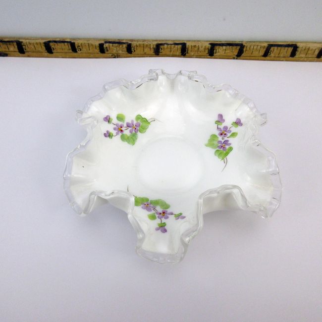 Current Bid: $22.01 [Refresh Price]YOU WILL NEED TO REFRESH THIS PAGE TO SEE UPDATED BID (Log in and this will update automatically) You must LOG IN or REGISTER to see this full page auction listing and bid. Auction is Over Winning Bid Amount: $22.01 **Lot Details: (155r) - Small Fenton silver crest dish marked Fenton and signed by artist. Violets In The Snow. Excellent condition Log in to add this lot to your watch list or place a bid |