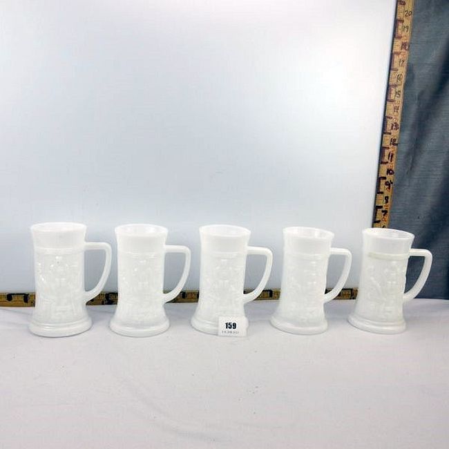 Current Bid: $9.00 [Refresh Price]YOU WILL NEED TO REFRESH THIS PAGE TO SEE UPDATED BID (Log in and this will update automatically) You must LOG IN or REGISTER to see this full page auction listing and bid. Auction is Over Winning Bid Amount: $9.00 **Lot Details: (159r) - Set of 5 vintage Federal milk glass beer steins, excellent condition Log in to add this lot to your watch list or place a bid |