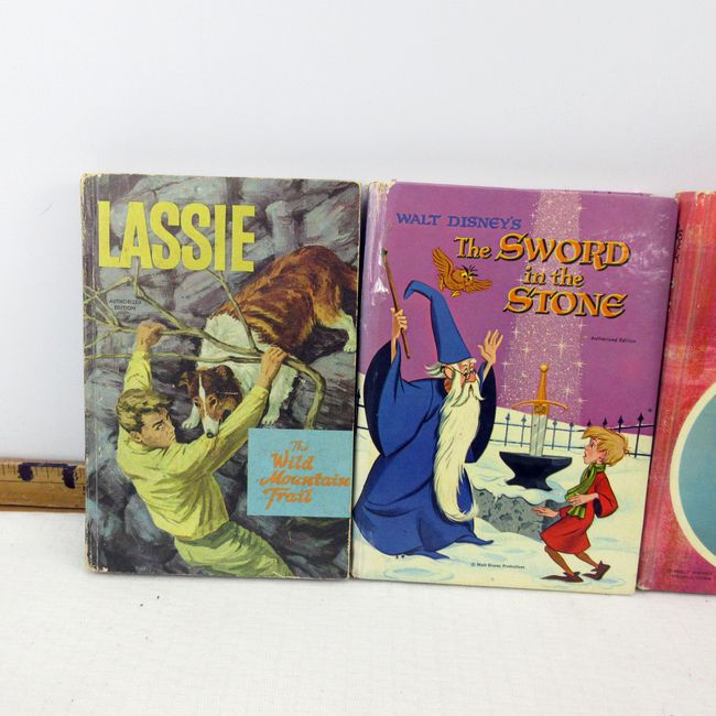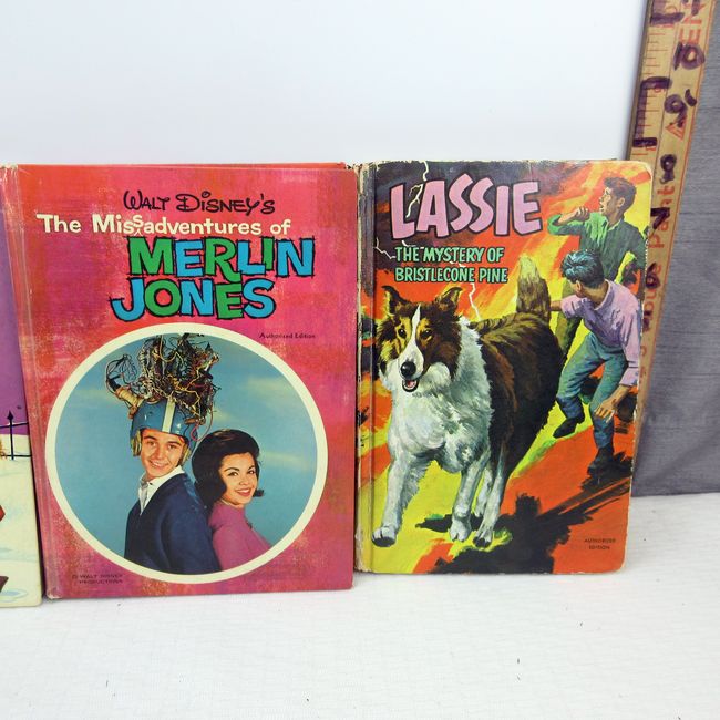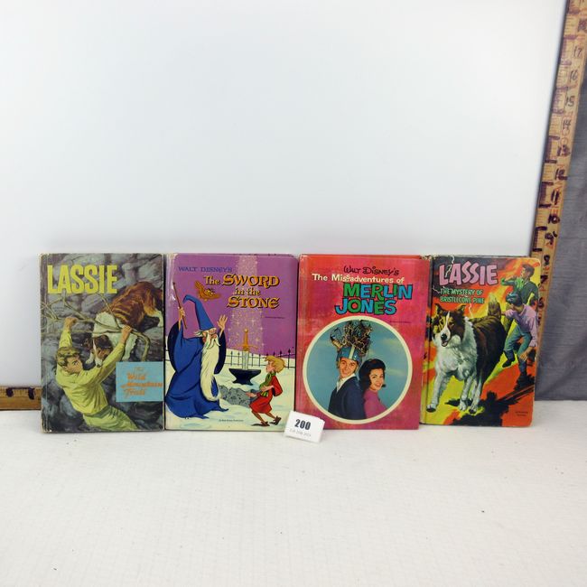 Current Bid: $7.00 [Refresh Price]YOU WILL NEED TO REFRESH THIS PAGE TO SEE UPDATED BID (Log in and this will update automatically) You must LOG IN or REGISTER to see this full page auction listing and bid. Auction is Over Winning Bid Amount: $7.00 **Lot Details: (200r) - 4 vintage Whitman books, Walt Disney Productions, The Sword In The Stone 1963 and The Misadventures of Merlin Jones 1964. Plus Lassie, The Mystery of Bristlecone Pine 1967 and Lassie The Wild Mountain Trail 1966V Log in to add this lot to your watch list or place a bid |