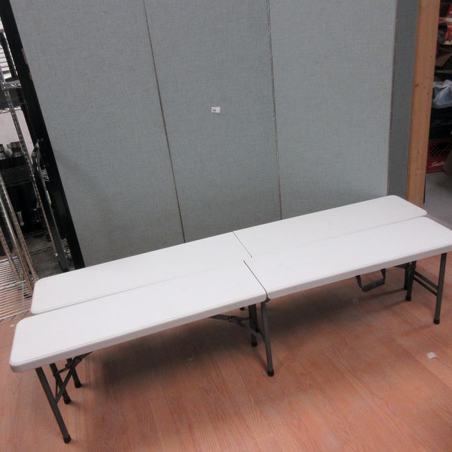 Current Bid: $57.00 [Refresh Price]YOU WILL NEED TO REFRESH THIS PAGE TO SEE UPDATED BID (Log in and this will update automatically) You must LOG IN or REGISTER to see this full page auction listing and bid. Auction is Over Winning Bid Amount: $57.00 **Lot Details: (214r) - Two 6' x 1' folding benches. Rust resistant, powder coated, steel frame, folds for easy storage Log in to add this lot to your watch list or place a bid |