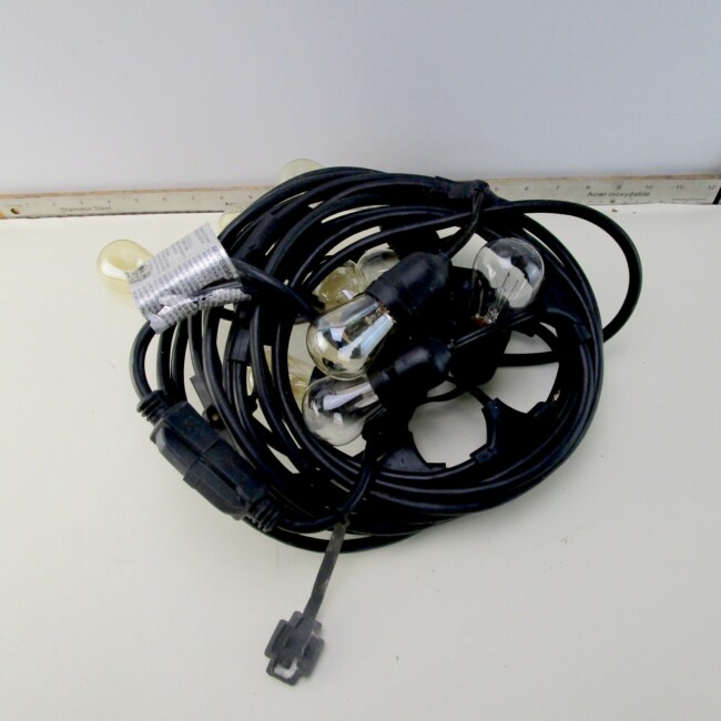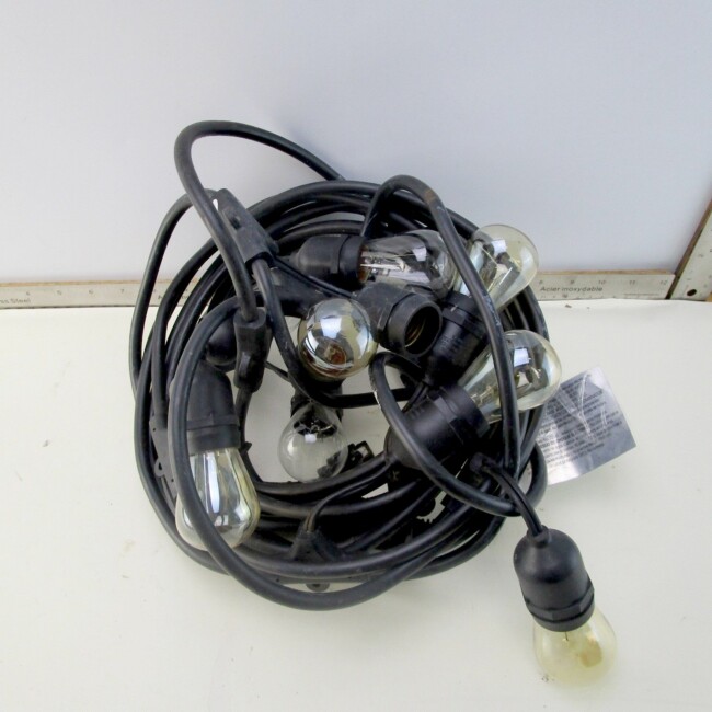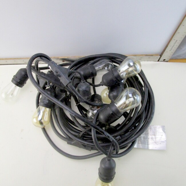 Current Bid: $15.00 [Refresh Price]YOU WILL NEED TO REFRESH THIS PAGE TO SEE UPDATED BID (Log in and this will update automatically) You must LOG IN or REGISTER to see this full page auction listing and bid. Auction is Over Winning Bid Amount: $15.00 **Lot Details: (LOT: G168) - 30 foot patio lights. Working but missing one bulb. Log in to add this lot to your watch list or place a bid |
