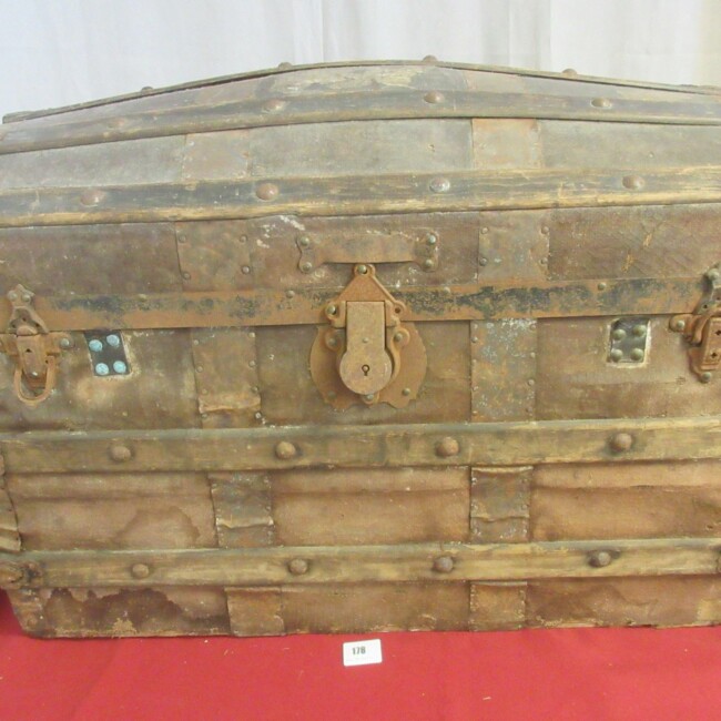 Current Bid: $18.00 [Refresh Price]YOU WILL NEED TO REFRESH THIS PAGE TO SEE UPDATED BID (Log in and this will update automatically) You must LOG IN or REGISTER to see this full page auction listing and bid. Auction is Over Winning Bid Amount: $18.00 **Lot Details: (LOT: G178) - Vintage humpback trunk. Has a great look, 30 inches long, 18 inches wide and 21 inches high. Log in to add this lot to your watch list or place a bid |