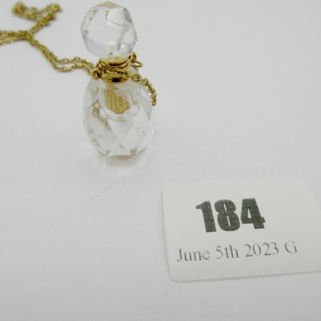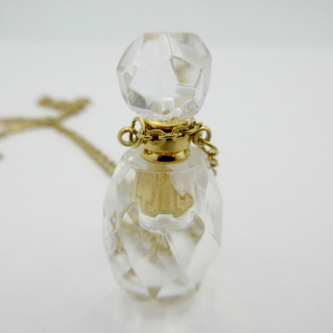 Current Bid: $9.00 [Refresh Price]YOU WILL NEED TO REFRESH THIS PAGE TO SEE UPDATED BID (Log in and this will update automatically) You must LOG IN or REGISTER to see this full page auction listing and bid. Auction is Over Winning Bid Amount: $9.00 **Lot Details: (LOT: G184) - A mini glass perfume bottle necklace that unscrews so you can put a few drops of your favorite perfume Log in to add this lot to your watch list or place a bid |
