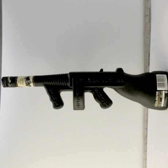 Current Bid: $23.75 [Refresh Price]YOU WILL NEED TO REFRESH THIS PAGE TO SEE UPDATED BID (Log in and this will update automatically) You must LOG IN or REGISTER to see this full page auction listing and bid. Auction is Over Winning Bid Amount: $23.75 **Lot Details: (LOT: G189) - An empty whiskey bottle made out of glass in the shape of a Tommy gun that was purchased in Europe. Perfect to display in the bar or the man cave. Log in to add this lot to your watch list or place a bid |