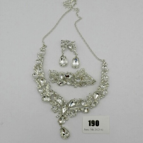 Current Bid: $7.00 [Refresh Price]YOU WILL NEED TO REFRESH THIS PAGE TO SEE UPDATED BID (Log in and this will update automatically) You must LOG IN or REGISTER to see this full page auction listing and bid. Auction is Over Winning Bid Amount: $7.00 **Lot Details: (LOT: G190) - An outstanding bracelet, necklace and earring set that sparkles so bright others will have to put on sunglasses. Caution, might cause temporary blindness. Log in to add this lot to your watch list or place a bid |