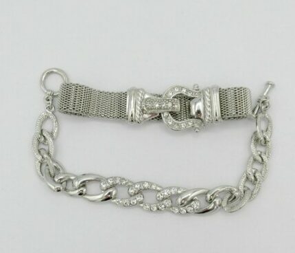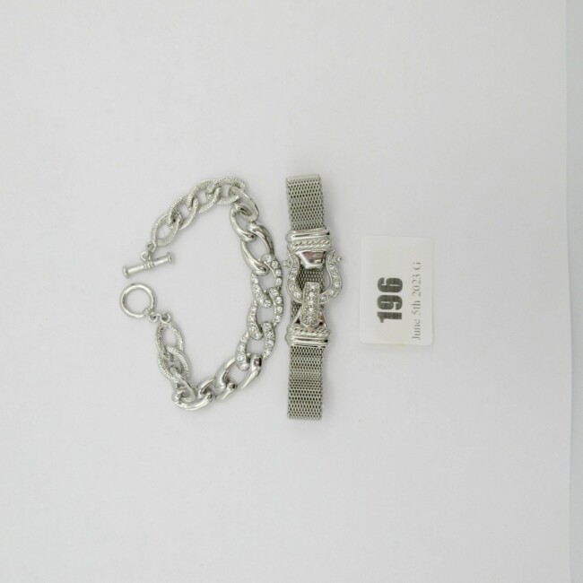 Current Bid: $5.00 [Refresh Price]YOU WILL NEED TO REFRESH THIS PAGE TO SEE UPDATED BID (Log in and this will update automatically) You must LOG IN or REGISTER to see this full page auction listing and bid. Auction is Over Winning Bid Amount: $5.00 **Lot Details: (LOT: G196) - Two women’s bracelets that are very well made with no markings both are silver tone with beautiful stones and one resembles a belt. Log in to add this lot to your watch list or place a bid |