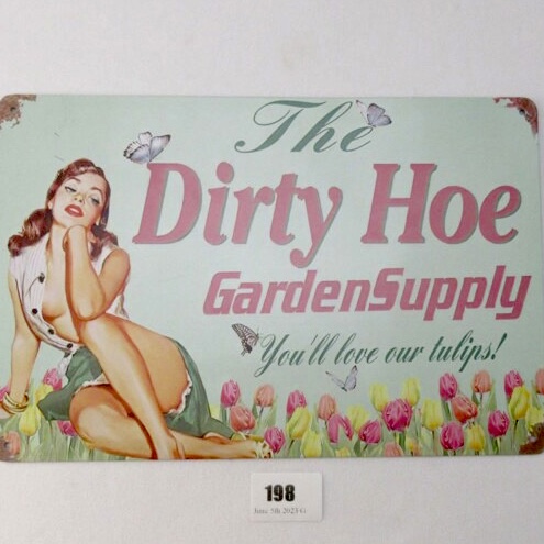 Current Bid: $70.00 [Refresh Price]YOU WILL NEED TO REFRESH THIS PAGE TO SEE UPDATED BID (Log in and this will update automatically) You must LOG IN or REGISTER to see this full page auction listing and bid. Auction is Over Winning Bid Amount: $70.00 **Lot Details: (LOT: G198) - Brand new and amazing condition metal dirty hoe garden supply sign. 8 in x 11 in Log in to add this lot to your watch list or place a bid |