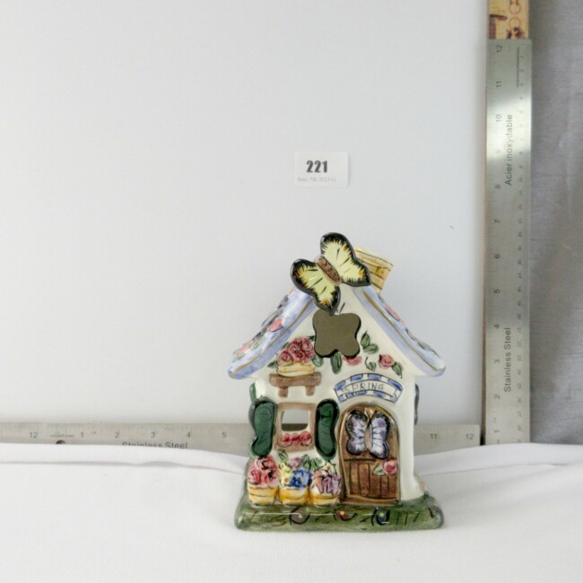 Current Bid: $5.00 [Refresh Price]YOU WILL NEED TO REFRESH THIS PAGE TO SEE UPDATED BID (Log in and this will update automatically) You must LOG IN or REGISTER to see this full page auction listing and bid. Auction is Over Winning Bid Amount: $5.00 **Lot Details: (LOT: G221) - The Butterfly House, tealight holder, by Elements. 6” high x 4 ½” square. New in box Log in to add this lot to your watch list or place a bid |