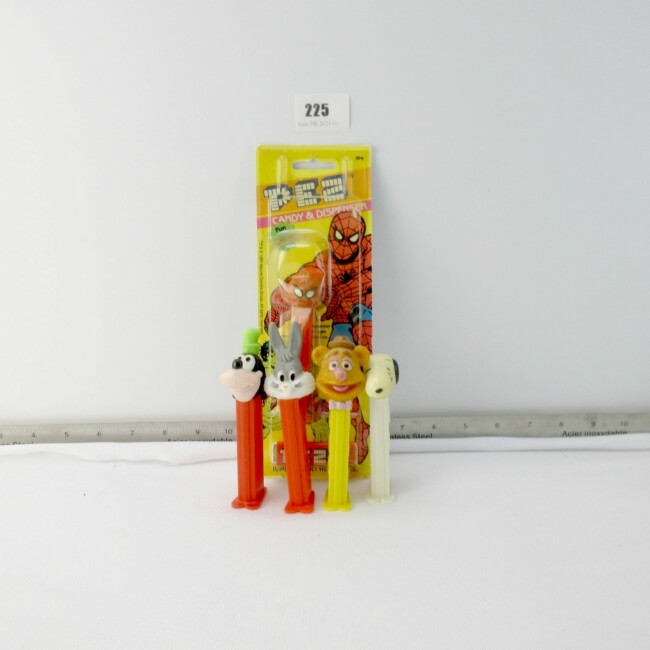 Current Bid: $13.50 [Refresh Price]YOU WILL NEED TO REFRESH THIS PAGE TO SEE UPDATED BID (Log in and this will update automatically) You must LOG IN or REGISTER to see this full page auction listing and bid. Auction is Over Winning Bid Amount: $13.50 **Lot Details: (LOT: G225) - Vintage 5 PEZ, 1 packaged Spiderman w candy either one has been removed (slight parts of packaging has lifted up from cardboard in a couple of sections), Bugs Bunny, Pluto, Snoopy And Vintage Fozzy Muppet The Bear Log in to add this lot to your watch list or place a bid |