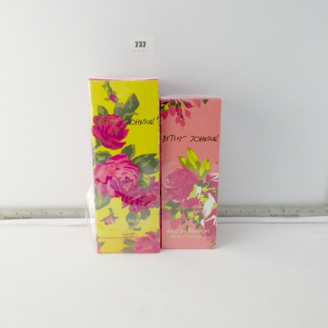 Current Bid: $22.00 [Refresh Price]YOU WILL NEED TO REFRESH THIS PAGE TO SEE UPDATED BID (Log in and this will update automatically) You must LOG IN or REGISTER to see this full page auction listing and bid. Auction is Over Winning Bid Amount: $22.00 **Lot Details: (LOT: G232) - 2 Brand New Betsy Johnson Eau de Parfum 100 ML each, never been opened Log in to add this lot to your watch list or place a bid |