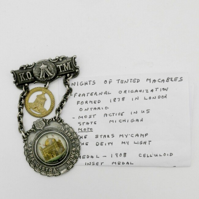 Current Bid: $5.00 [Refresh Price]YOU WILL NEED TO REFRESH THIS PAGE TO SEE UPDATED BID (Log in and this will update automatically) You must LOG IN or REGISTER to see this full page auction listing and bid. Auction is Over Winning Bid Amount: $5.00 **Lot Details: (LOT: G256) - Antique May 1 1900 The Whitehead & Hoag Newark, N.J. Metal, 4" long with a note written by elderly lady of the history of this metal included for the winner in front of the consignor Log in to add this lot to your watch list or place a bid |