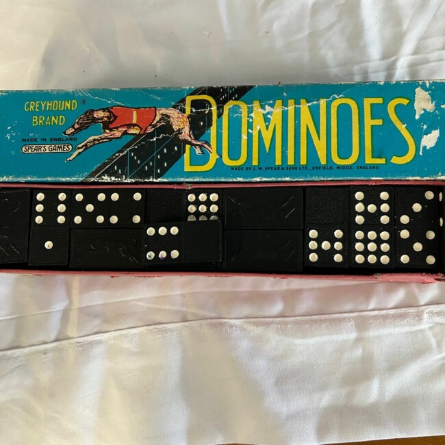 Current Bid: $5.00 [Refresh Price]YOU WILL NEED TO REFRESH THIS PAGE TO SEE UPDATED BID (Log in and this will update automatically) You must LOG IN or REGISTER to see this full page auction listing and bid. Auction is Over Winning Bid Amount: $5.00 **Lot Details: (LOT: G267) - Antique solid wood Greyhound Brand Dominoes. Very cool old original box. Some minor wear from age and storage. Log in to add this lot to your watch list or place a bid |