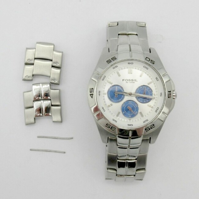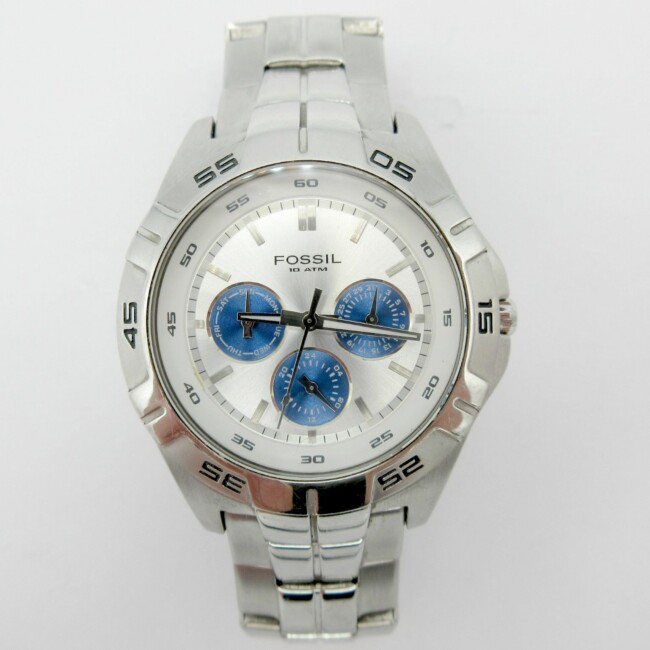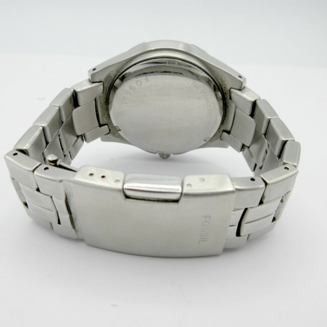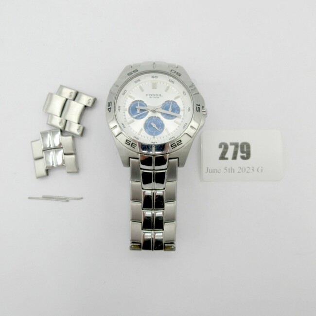 Current Bid: $28.00 [Refresh Price]YOU WILL NEED TO REFRESH THIS PAGE TO SEE UPDATED BID (Log in and this will update automatically) You must LOG IN or REGISTER to see this full page auction listing and bid. Auction is Over Winning Bid Amount: $28.00 **Lot Details: (LOT: G279) - Fossil Chronograph watch with stainless steel band. Large dial approx 30mm. Comes with 2 additionl links for bracelet and has a new battery. Great shape, only light wear. Log in to add this lot to your watch list or place a bid |
