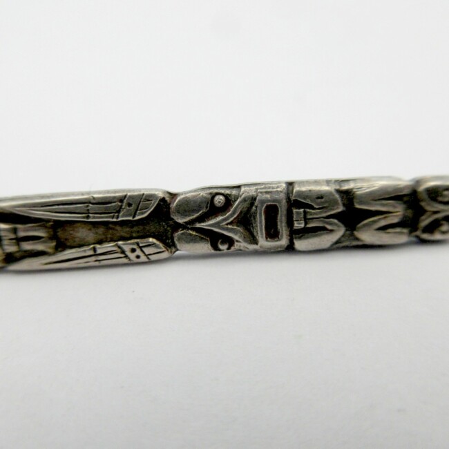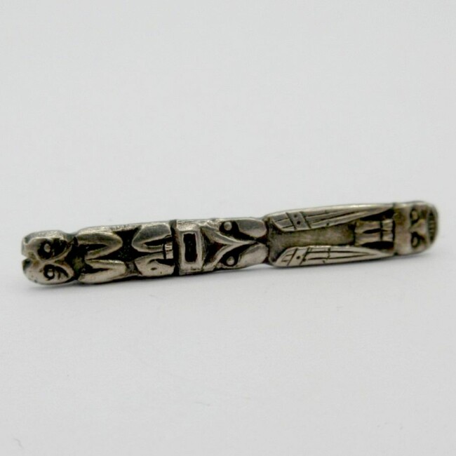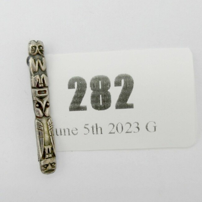 Current Bid: $19.00 [Refresh Price]YOU WILL NEED TO REFRESH THIS PAGE TO SEE UPDATED BID (Log in and this will update automatically) You must LOG IN or REGISTER to see this full page auction listing and bid. Auction is Over Winning Bid Amount: $19.00 **Lot Details: (LOT: G282) - Very cool vintage Sterling Silver Totem Pole pin. Approx 35mm and terrific detail. Log in to add this lot to your watch list or place a bid |