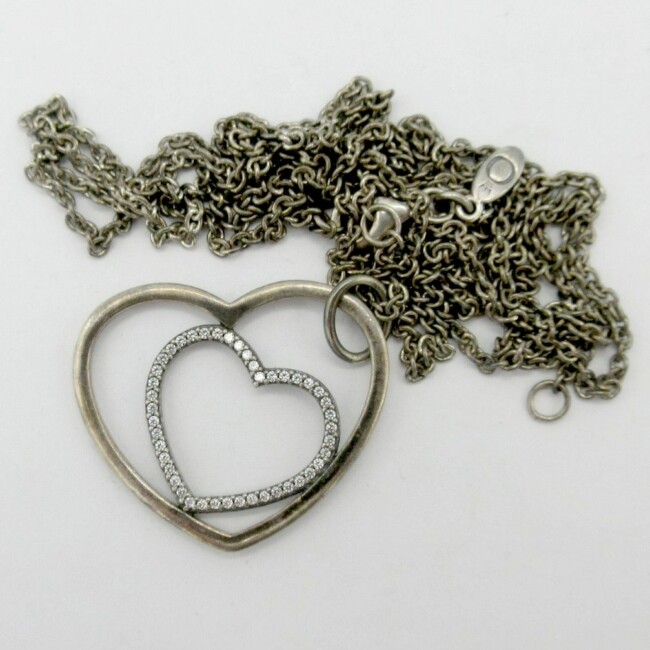 Current Bid: $23.21 [Refresh Price]YOU WILL NEED TO REFRESH THIS PAGE TO SEE UPDATED BID (Log in and this will update automatically) You must LOG IN or REGISTER to see this full page auction listing and bid. Auction is Over Winning Bid Amount: $23.21 **Lot Details: (LOT: G286) - Adorable Sterling Silver necklace with crystal heart pendant (30mm). The necklace is very long approx 26" and adjusts to longer, could be doubled up. Marked & tested Log in to add this lot to your watch list or place a bid |