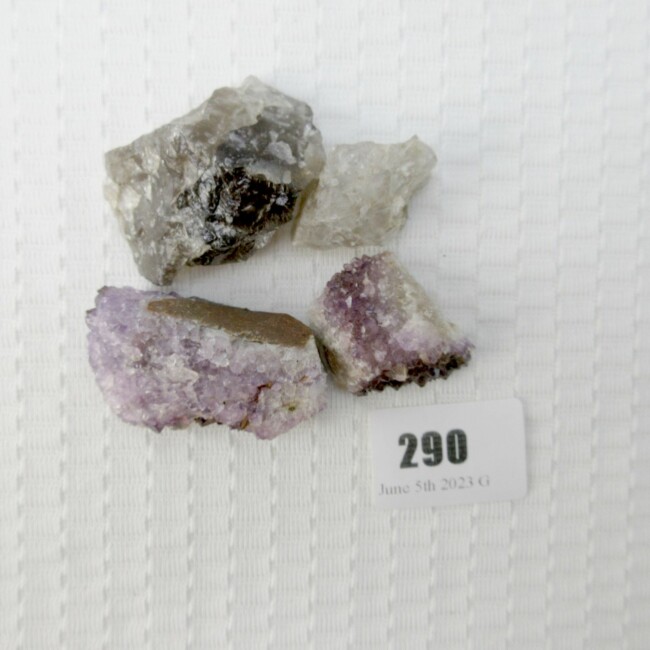 Current Bid: $9.00 [Refresh Price]YOU WILL NEED TO REFRESH THIS PAGE TO SEE UPDATED BID (Log in and this will update automatically) You must LOG IN or REGISTER to see this full page auction listing and bid. Auction is Over Winning Bid Amount: $9.00 **Lot Details: (LOT: G290) - Impressive collection of Amethyst crystal & smokey quartz crystal specimens. They measure approx 40mm-60mm. Log in to add this lot to your watch list or place a bid |