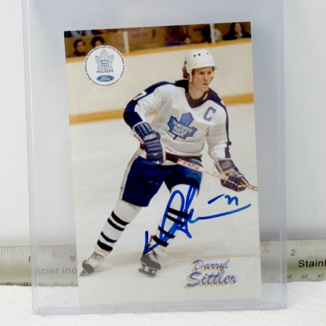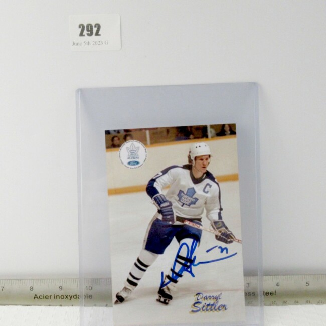 Current Bid: $9.00 [Refresh Price]YOU WILL NEED TO REFRESH THIS PAGE TO SEE UPDATED BID (Log in and this will update automatically) You must LOG IN or REGISTER to see this full page auction listing and bid. Auction is Over Winning Bid Amount: $9.00 **Lot Details: (LOT: G292) - Hand signed 4" x 6" photo of Toronto Maple Leafs legend and hall of famer Darryl Sittler. Done on an official Alumni Association photo. Log in to add this lot to your watch list or place a bid |