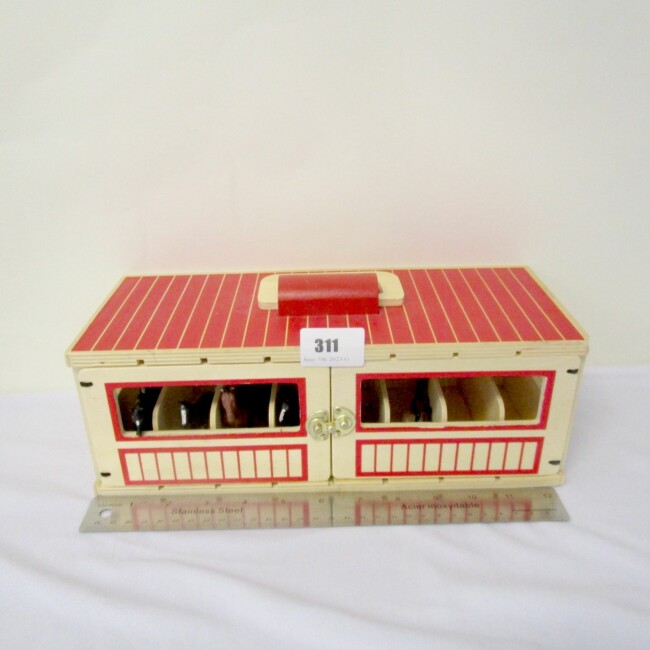 Current Bid: $9.00 [Refresh Price]YOU WILL NEED TO REFRESH THIS PAGE TO SEE UPDATED BID (Log in and this will update automatically) You must LOG IN or REGISTER to see this full page auction listing and bid. Auction is Over Winning Bid Amount: $9.00 **Lot Details: (LOT: G311) - Wooden “MELISSA And Doug” Play Set, Horse Stables With 6 Horses Log in to add this lot to your watch list or place a bid |