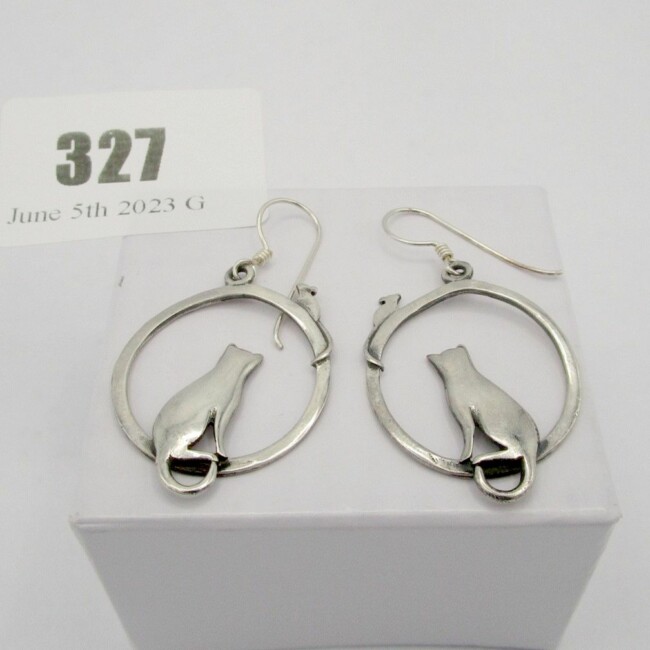 Current Bid: $16.01 [Refresh Price]YOU WILL NEED TO REFRESH THIS PAGE TO SEE UPDATED BID (Log in and this will update automatically) You must LOG IN or REGISTER to see this full page auction listing and bid. Auction is Over Winning Bid Amount: $16.01 **Lot Details: (LOT: G327) - A nice pair of marked 925 earrings with a cat looking at a mouse, very fun and well made. Log in to add this lot to your watch list or place a bid |