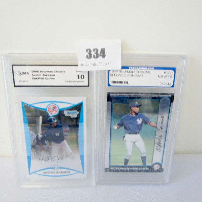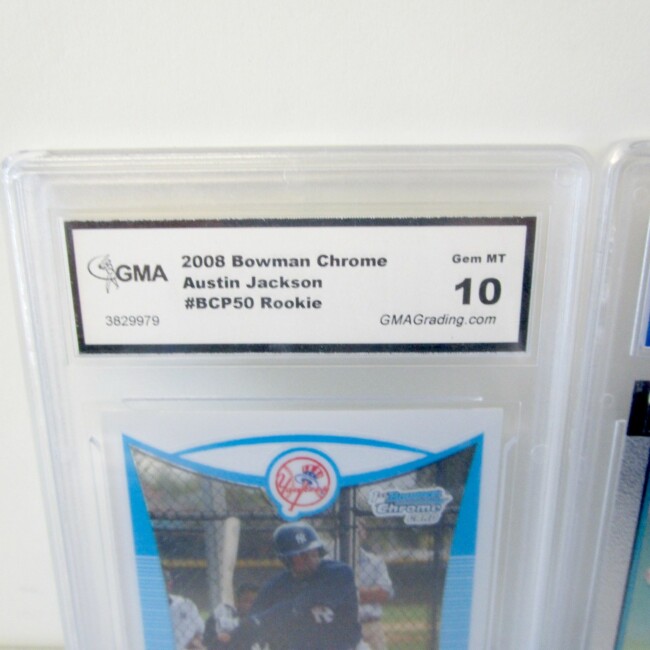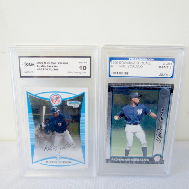 Current Bid: $5.00 [Refresh Price]YOU WILL NEED TO REFRESH THIS PAGE TO SEE UPDATED BID (Log in and this will update automatically) You must LOG IN or REGISTER to see this full page auction listing and bid. Auction is Over Winning Bid Amount: $5.00 **Lot Details: (LOT: G334) - Two graded cards, Austin Jackson perfect 10 and Alfonso Soriano. Log in to add this lot to your watch list or place a bid |