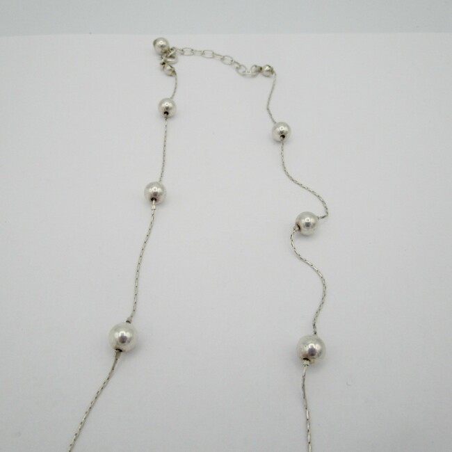 Current Bid: $17.50 [Refresh Price]YOU WILL NEED TO REFRESH THIS PAGE TO SEE UPDATED BID (Log in and this will update automatically) You must LOG IN or REGISTER to see this full page auction listing and bid. Auction is Over Winning Bid Amount: $17.50 **Lot Details: (LOT: G339) - A marked 925 silver necklace with silver balls on it. Log in to add this lot to your watch list or place a bid |