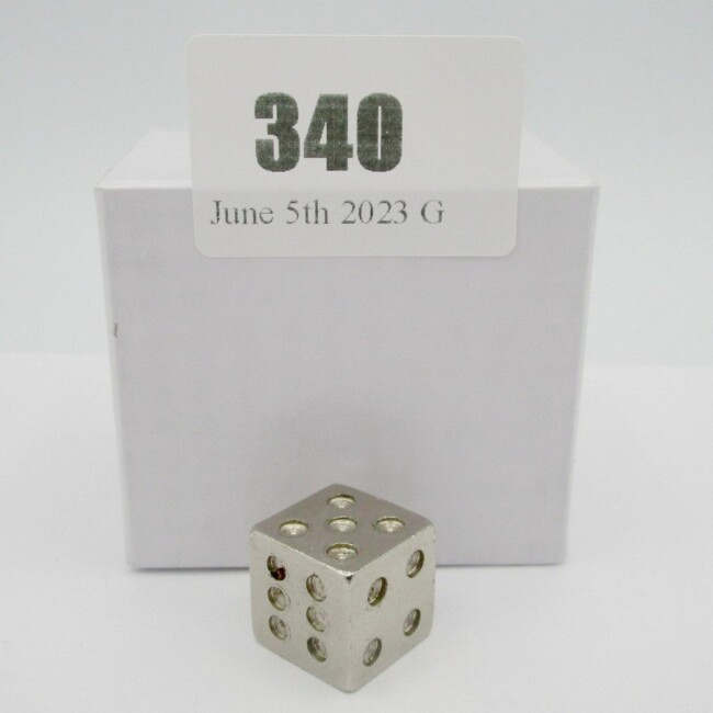 Current Bid: $7.07 [Refresh Price]YOU WILL NEED TO REFRESH THIS PAGE TO SEE UPDATED BID (Log in and this will update automatically) You must LOG IN or REGISTER to see this full page auction listing and bid. Auction is Over Winning Bid Amount: $7.07 **Lot Details: (LOT: G340) - A neat little trinket, a solid metal dice, good craftsmanship perfect for a paper weight or desk trinket Log in to add this lot to your watch list or place a bid |