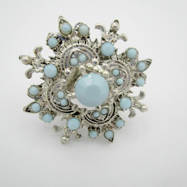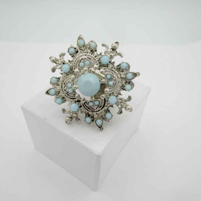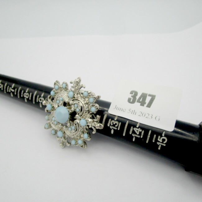 Current Bid: $5.00 [Refresh Price]YOU WILL NEED TO REFRESH THIS PAGE TO SEE UPDATED BID (Log in and this will update automatically) You must LOG IN or REGISTER to see this full page auction listing and bid. Auction is Over Winning Bid Amount: $5.00 **Lot Details: (LOT: G347) - Very unique ring, has a wonderful design, the ring band is metal but stretches to fit the wearer, in good shape and all there Log in to add this lot to your watch list or place a bid |