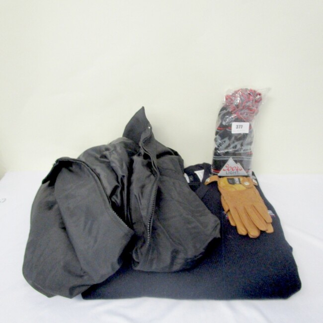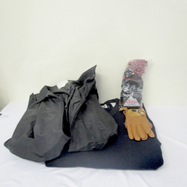 Current Bid: $12.01 [Refresh Price]YOU WILL NEED TO REFRESH THIS PAGE TO SEE UPDATED BID (Log in and this will update automatically) You must LOG IN or REGISTER to see this full page auction listing and bid. Auction is Over Winning Bid Amount: $12.01 **Lot Details: (LOT: G377) - 1 Black Windbreaker Size Medium Great Condition,A Coors Light Winter Touque,Size Large Brand-New Woodbine Racetrack Sweater And A Pair Of Small Womens Driving Gloves. Log in to add this lot to your watch list or place a bid |