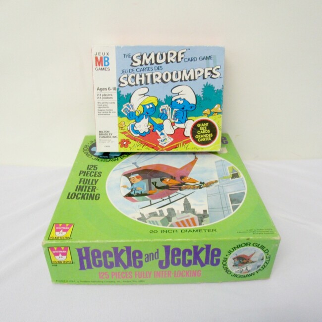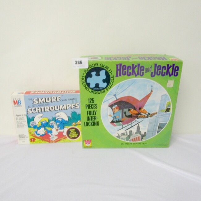Current Bid: $5.00 [Refresh Price]YOU WILL NEED TO REFRESH THIS PAGE TO SEE UPDATED BID (Log in and this will update automatically) You must LOG IN or REGISTER to see this full page auction listing and bid. Auction is Over Winning Bid Amount: $5.00 **Lot Details: (LOT: G386) - vintage Heckle and Jeckle 125 piece complete puzzle(1971), with The Smurf card game Log in to add this lot to your watch list or place a bid |
