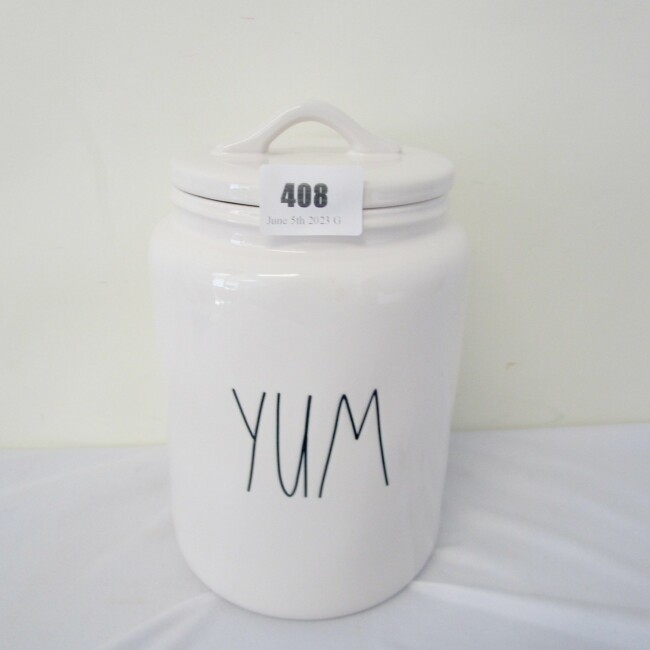 Current Bid: $9.00 [Refresh Price]YOU WILL NEED TO REFRESH THIS PAGE TO SEE UPDATED BID (Log in and this will update automatically) You must LOG IN or REGISTER to see this full page auction listing and bid. Auction is Over Winning Bid Amount: $9.00 **Lot Details: (LOT: G408) - Rae Dunn Yum large cookie jar 10” Log in to add this lot to your watch list or place a bid |