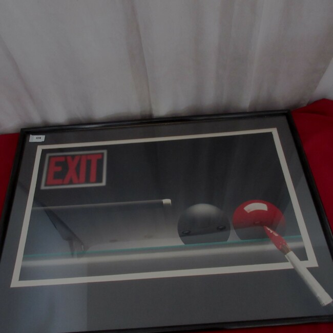 Current Bid: $11.00 [Refresh Price]YOU WILL NEED TO REFRESH THIS PAGE TO SEE UPDATED BID (Log in and this will update automatically) You must LOG IN or REGISTER to see this full page auction listing and bid. Auction is Over Winning Bid Amount: $11.00 **Lot Details: (LOT: G428) - Retro pool hall print titled "Evening Snooker" 27x37" Ideal for a man cave. . Very large size. Very hard to photograph as it is quite dark. Very cool print tho. Log in to add this lot to your watch list or place a bid |