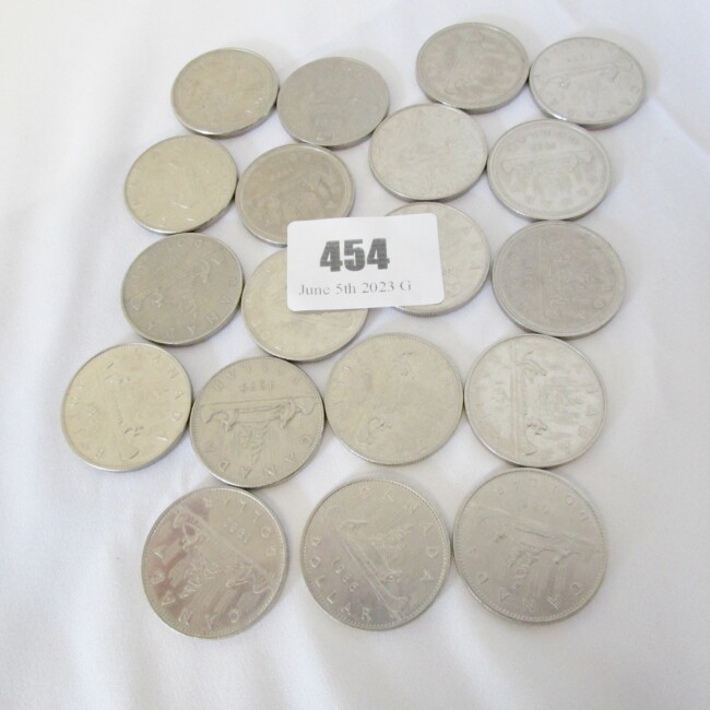 Current Bid: $82.00 [Refresh Price]YOU WILL NEED TO REFRESH THIS PAGE TO SEE UPDATED BID (Log in and this will update automatically) You must LOG IN or REGISTER to see this full page auction listing and bid. Auction is Over Winning Bid Amount: $82.00 **Lot Details: (LOT: G454) - lot of 19 Canada one dollar $1 coins-'69[one], '75[five], '77[four], '78[six], '83[one], '86[two] Several are lightly circulated Log in to add this lot to your watch list or place a bid |
