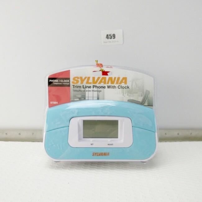 Current Bid: $12.08 [Refresh Price]YOU WILL NEED TO REFRESH THIS PAGE TO SEE UPDATED BID (Log in and this will update automatically) You must LOG IN or REGISTER to see this full page auction listing and bid. Auction is Over Winning Bid Amount: $12.08 **Lot Details: (LOT: G459) - A new "Sylvania" Trim Line Phone c/w Clock. Model # ST884 features One touch redial, Still in original packaging. With complete instuctions. Perfect for nite stand or kitchen counter Log in to add this lot to your watch list or place a bid |
