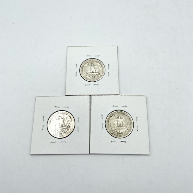Current Bid: $52.00 [Refresh Price]YOU WILL NEED TO REFRESH THIS PAGE TO SEE UPDATED BID (Log in and this will update automatically) You must LOG IN or REGISTER to see this full page auction listing and bid. Auction is Over Winning Bid Amount: $52.00 **Lot Details: (LOT: H21) - U.S.A. “Three” WWII Era, .900 Silver Quarters. 1943,1944 and 1945. Log in to add this lot to your watch list or place a bid |
