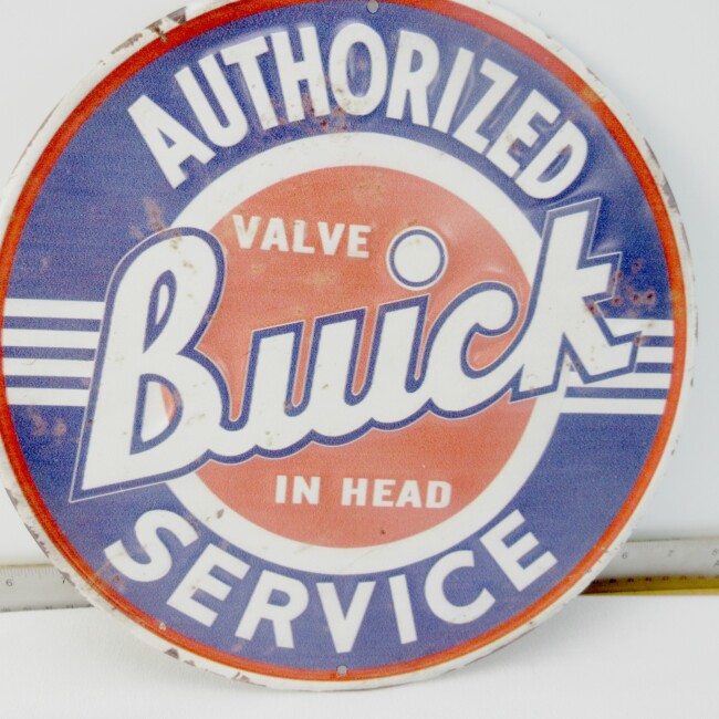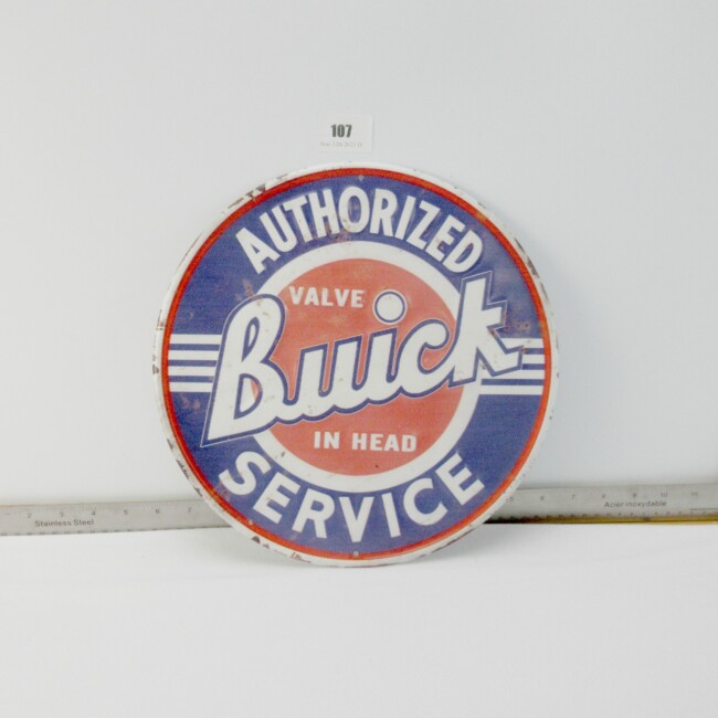 Current Bid: $5.00 [Refresh Price]YOU WILL NEED TO REFRESH THIS PAGE TO SEE UPDATED BID (Log in and this will update automatically) You must LOG IN or REGISTER to see this full page auction listing and bid. Auction is Over Winning Bid Amount: $5.00 **Lot Details: (LOT: H107) - Vintage Metal style Buick Sign 11.5" Round Log in to add this lot to your watch list or place a bid |