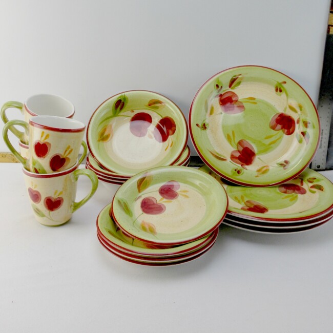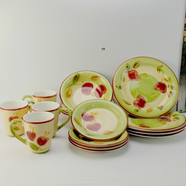 Current Bid: $7.00 [Refresh Price]YOU WILL NEED TO REFRESH THIS PAGE TO SEE UPDATED BID (Log in and this will update automatically) You must LOG IN or REGISTER to see this full page auction listing and bid. Auction is Over Winning Bid Amount: $7.00 **Lot Details: (LOT: H110) - ew 16 Piece Sorrento Garden Dinnerware 4 Large Plates 10.5" Round, 4 Med, Plates 7.5" Round 4 Bowls 8.5" Round, 4 13 Oz Mugs Log in to add this lot to your watch list or place a bid |