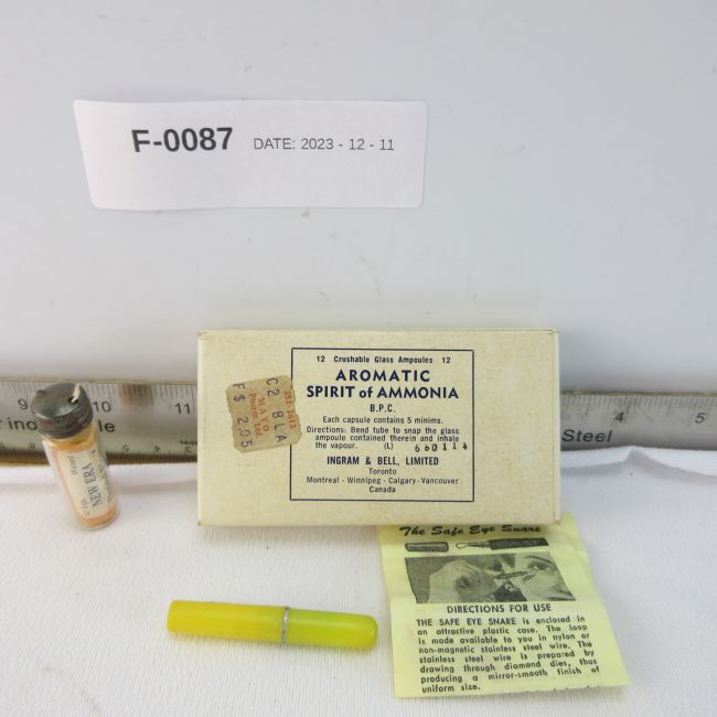 Current Bid: $5.00 [Refresh Price]YOU WILL NEED TO REFRESH THIS PAGE TO SEE UPDATED BID (Log in and this will update automatically) You must LOG IN or REGISTER to see this full page auction listing and bid. Auction is Over Winning Bid Amount: $5.00 **Lot Details: (LOT: F87) - Medical paraphernalia: this lot contains one unopened box of aromatic spirit of ammonia made by Ingram and Bell. The unopened box contains 12 crushable glass ampules a small jar of new era dental floss with it the new... Log in to add this lot to your watch list or place a bid |