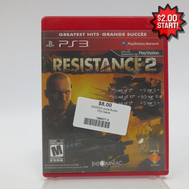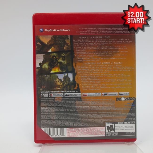 Current Bid: $2.00 [Refresh Price]YOU WILL NEED TO REFRESH THIS PAGE TO SEE UPDATED BID (Log in and this will update automatically) You must LOG IN or REGISTER to see this full page auction listing and bid. Auction is Over Winning Bid Amount: $2.00 **Lot Details: (LOT: Z621) - Resistance 2 greatest hits PS3 Log in to add this lot to your watch list or place a bid |