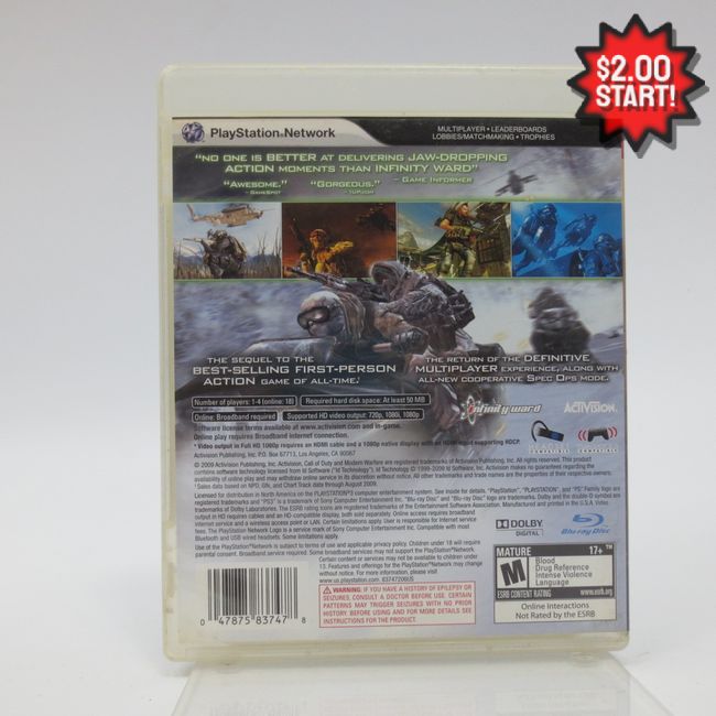 Current Bid: $2.00 [Refresh Price]YOU WILL NEED TO REFRESH THIS PAGE TO SEE UPDATED BID (Log in and this will update automatically) You must LOG IN or REGISTER to see this full page auction listing and bid. Auction is Over Winning Bid Amount: $2.00 **Lot Details: (LOT: Z622) - Call Of Duty Modern Warfare 2 Playstation PS3 Log in to add this lot to your watch list or place a bid |